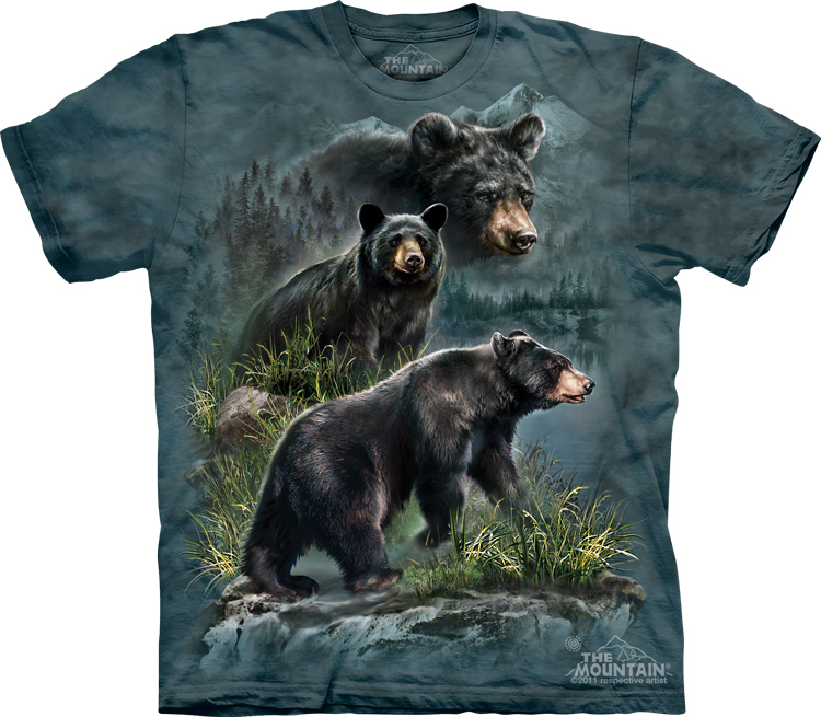 Взрослая 3D Футболка Mountain "Three Black Bears"